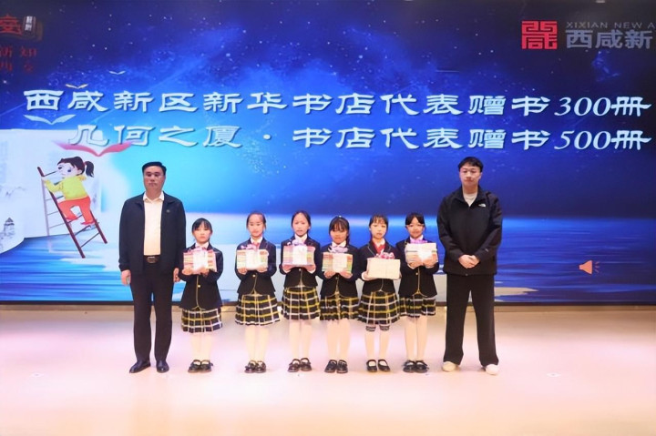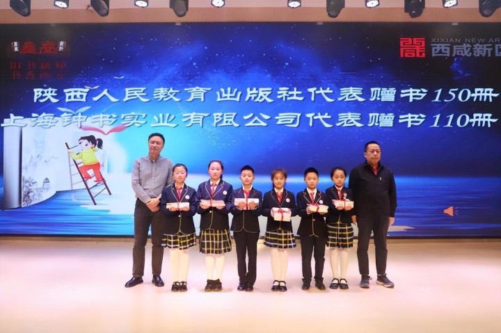 活动现场还举行了爱心赠书仪式。西咸新区新华书店、几何之厦・书店、陕西人民教育出版社、上海钟书实业有限公司向学校捐赠国学经典、少儿文学、科普知识等各类图书1060册。学校向捐赠方回赠荣誉证书,表达诚挚谢意。